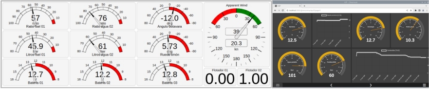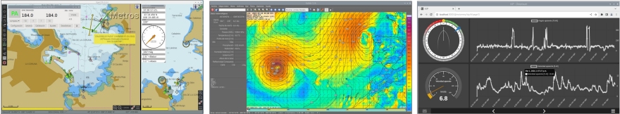 La extraordinaria fortaleza de este sistema radica en que aun siendo un ordenador (Raspberry Pi) de muy bajo consumo su potencia es tan elevada que permite la implantación y completa funcionalidad del software marino avanzado Openplotter que se aprovechará de las múltiples capacidades de conexión estándar como HDMI, USB, Wi-Fi, Bluetooth y Ethernet y de otras muchas capacidades de conexión únicas de Raspberry Pi gracias a su exclusivo conector GPIO como 1W, I2C y SPI, necesarias para la conexión de multitud de económicos sensores. Consiga con una sola y única unidad PiMares centralizar todos los datos de todos los sensores e instrumentos de su yate: GPS, AIS, IMU (compás magnético y ángulos de escora y cabeceo), veleta, anemómetro, corredera, sonda, voltajes de todas sus baterías, niveles de todos sus depósitos y RPM de todos sus motores. Si lo desea podrá monitorizar el funcionamiento de alternadores, cargadores de baterías, paneles solares, flotadores y sensores de presencia. Podrá crear fácilmente, con un único cable (1Wire), una red de hasta 60 termómetros 1W en su yate y con ayuda de la conexión I2C disponible en PiMares puede aņadir al sistema un gran abanico de sensores como barómetros e higrómetros. Disponga de las mejores aplicaciones de cartografía y meteorología para utilizar desde su mesa de cartas o desde cualquiera de sus dispositivos móviles. Cree pantallas de relojes en sus tabletas con la ayuda de cualquiera de las variadas aplicaciones de tableros de relojes disponibles en Openplotter. |