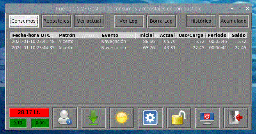 Observara en la simulación como el patrón Alberto, en otra salida, ha repostado una cantidad de litros que servirá para regularizar los consumos que