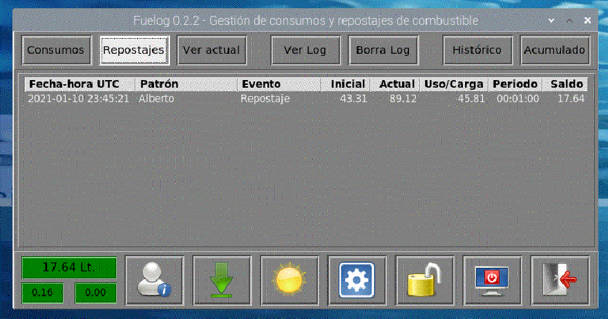 Si el fondo de esta casilla es de color verde significará que el patrón dispone de esos litros de combustible de repostajes anteriores.