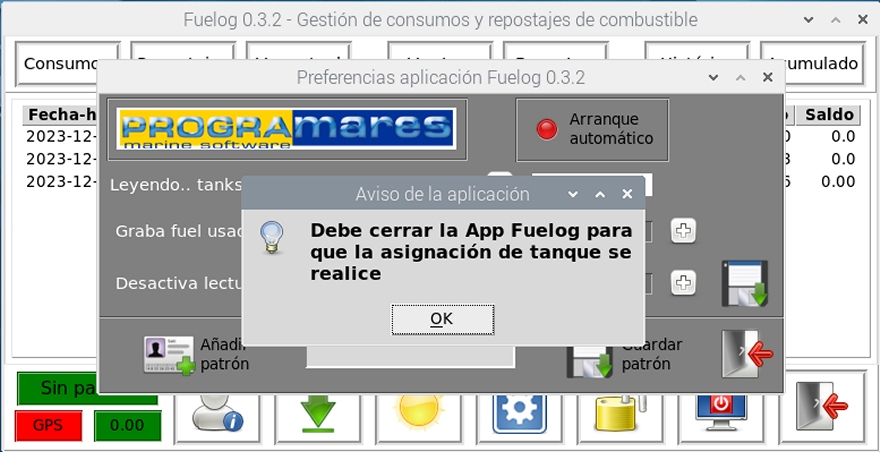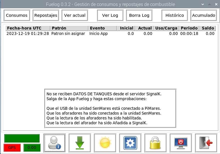 Otro evento vigilado por la App Fuelog se da cuando la recibe desde SignalK los datos de uno o más tanques pero ninguno coincide