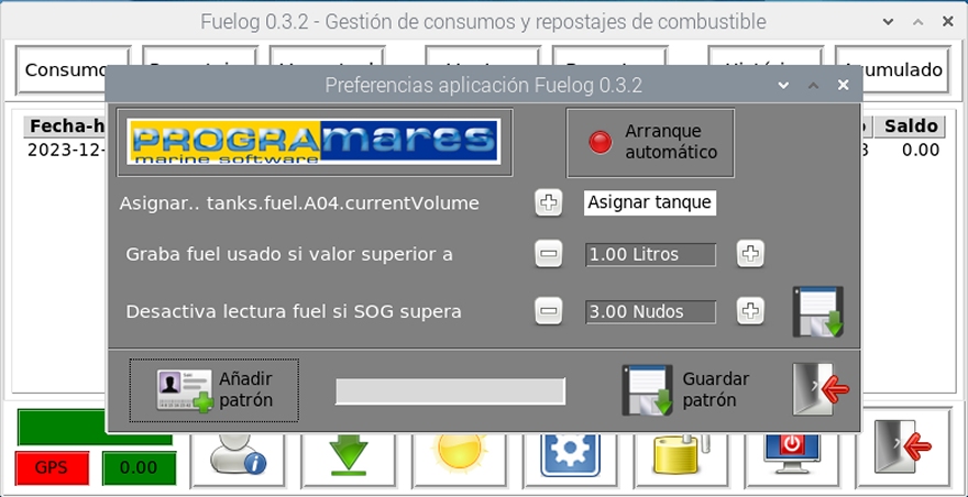 Este es el momento adecuado para pulsar el botón Arranque automático de la App Fuelog si desea que siempre que su PiMares se encienda.