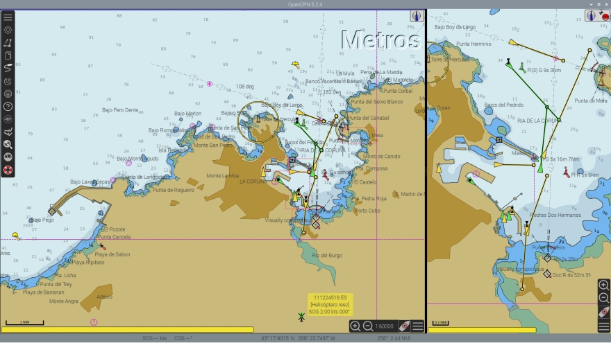 Si el cliente desea instalar una antena VHF exterior para su receptor AIS es conveniente que solicite que su PiMares disponga de conector de antenas estándar (Conector hembra). La antena AIS instalada por Programares va conectada directamente al receptor y hace que su centralita PiMares reciba tráfico AIS desde el momento que la estrene. El receptor AIS instalado en su PiMares, como se ha comprobado, es capaz de recibir ecos de buques a varias millas incluso sin antena. Tan solo el pequeño cable conectado al receptor es capaz de ejercer de antena y recibir estos ecos. Por este motivo se incluye esta pequeña, discreta y eficaz antena VHF AIS (160 Mhz conector BNC) en todas las unidades PiMares. Con esta antena tendrá una excelente recepción del tráfico de buques y evitará la instalación de antenas exteriores. Una vez encendida su centralita marina PiMares su receptor AIS comenzará a recibir los datos de todos los buques, boyas, faros, aviones o helicópteros de rescate que se encuentren próximos a su yate. Su aplicación de cartografía o plotter comenzará a inundar la carta utilizada con todos y cada uno de los buques recibidos en el sistema AIS. También le permitirá asignar alarmas de proximidad o posible rumbo de colisión para todo el tráfico AIS recibido. Ninguna de las App de cartografía o plotter, como Opencpn y Avnav, necesitan ser configuradas para recibir el tráfico AIS. Ambas disponen de conexión directa con el servidor Signal K para recibir el tráfico AIS y todos los datos que necesiten. |