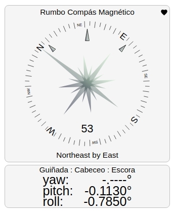La velocidad de refresco de este sensor que muestra el compás magnético la escora, el cabeceo y la guiñada esta al nivel de la electrónica de competición. Alguno de estos datos tienen una resolución de milésimas de grado y sus tiempos de refresco se miden en pocos milisegundos. Solamente con estos nuevos sensores IMU con conexión estándar I2C dispondrá de los relojes de rumbo magnético (compás), ángulo de guiñada (yaw), ángulo de escora (roll) y ángulo cabeceo (pitch). Sensor de muy bajo consumo ya que funciona con tan solo 3.3 voltios. No encontrará un modo más eficiente, tanto de gasto económico como de gasto o consumo eléctrico, que le permita obtener esta cantidad de datos con esta precisión y velocidad de refresco. Podemos ver el dato compás magnético en tres posibles formatos, digital, analógico de sector y analógico 360 grados denominado rosa, como el mostrado en esta imagen. El resto de los ángulos calculados por el sensor se visualizan en formato digital por la elevada precisión obtenida y el número de cifras decimales mostradas. OpenPlotter incluye entre su software la App PyPilot que permite la calibración de todos los sensores IMU que recomienda. |