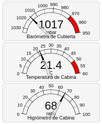 PiMares en su interior dispone de una ficha eléctrica que permite al usuario conectar cómodamente cualquier sensor I2C. Estos sensores, fácilmente reconocidos por el sistema una vez conectados, permiten que se disponga a bordo de unos muy interesantes datos meteorológicos con una precisión excelente. Son sensores de muy bajo consumo, como la brújula electrónica o IMU o los termómetros 1W, ya que todos ellos funcionan con tan solo 3.3 voltios. Gracias a su conexión se generará los relojes de presión atmosférica (barómetro), temperatura (asignable) y humedad ambiente (higrómetro). Como en todos los casos permiten ser configurados en tamaño, posición, mínimos y máximos de la escala, zonas rojas de medida y permiten ser asignados a la página o páginas que desee. La aplicación de cartografía tiene su propio reloj barómetro probablemente por estimar que pueda ser un dato importante en la previsión meteorológica. Incluso la propia aplicación pone a su disposición un completo gráfico histórico de datos barométricos para que se pueda consultar la progresión de la presión atmosférica en las últimas horas o días. |